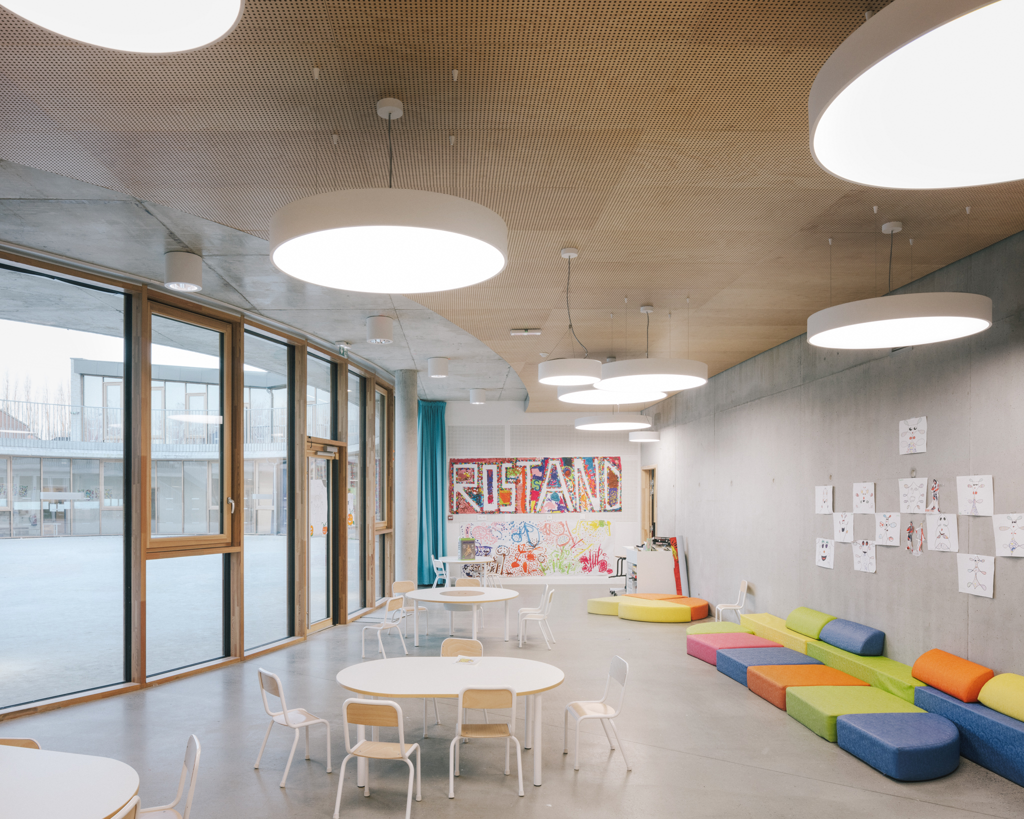 La diversité des espaces, aussi bien intérieurs qu’extérieurs, leur adaptation aux différents âges de l’enfant (hauteurs et géométries différentes en école maternelle et élémentaire), et surtout la liberté d’usage qu’ils offrent en dialoguant étroitement avec les cours, en sont les principaux atouts.